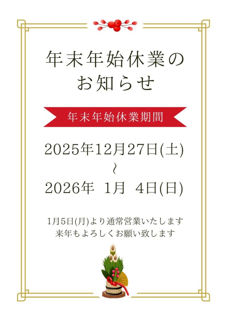 誠に勝手ながら、下記の期間を休業日とさせていただきます。 大変ご迷惑お掛け致しますが、何卒ご理解頂き […]